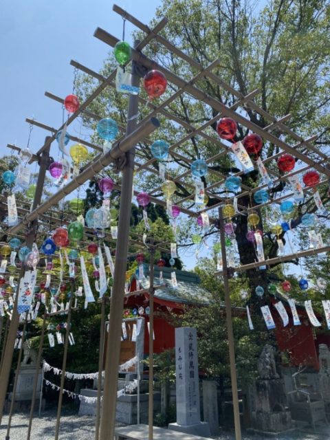 毎年、夏になると境内には華やかに飾られた風鈴がたくさん掛かっています✨