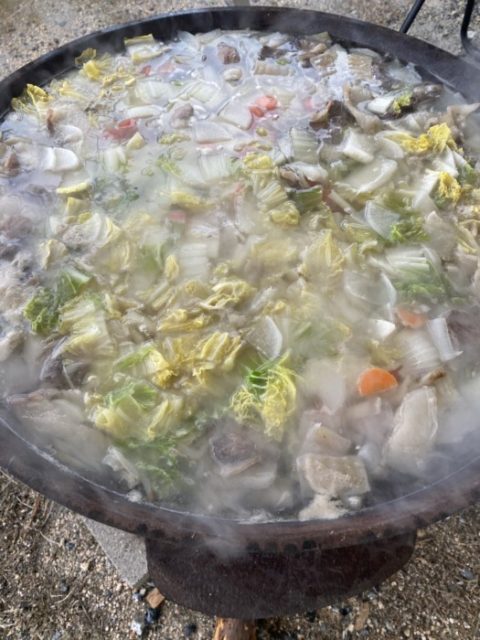 そして、イノシシのお肉を使って【ボタン鍋】も釜で大量に作って振舞いましたよ❗️