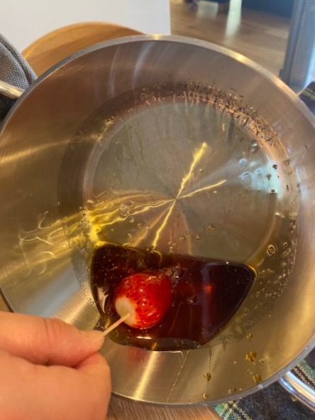 綺麗に洗って水気を切ったイチゴを絡めます✨