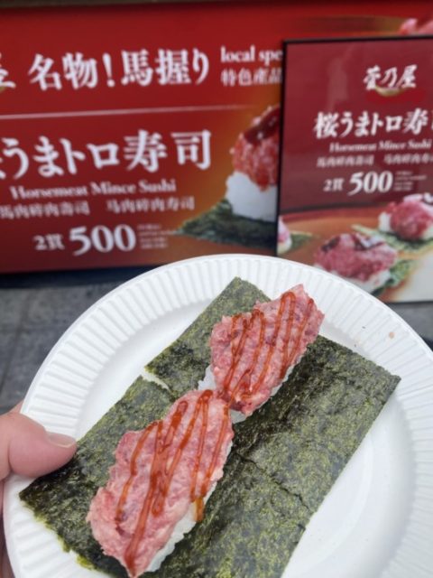 その他には、馬肉メンチや馬肉寿司など食べ歩きをして、とっても大満足な旅の1日目でした(^ ^)✨