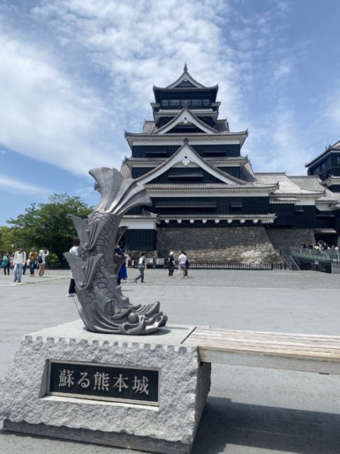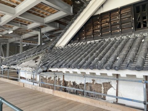 数年前に地震により倒壊した部分が多く、GW中は復旧作業中のお城の一部分が一般公開されており、日頃は見れない屋根や壁の部分が間近で見学する事が出来ました❗️