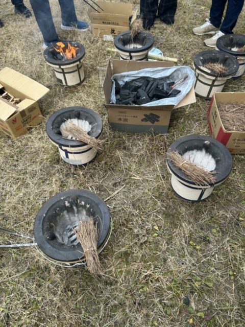 見守り隊の保護者さん達もケガや火の扱いに気をつけながらも子供達に教えて、なんとか七輪でお餅を焼く事が出来ました✨