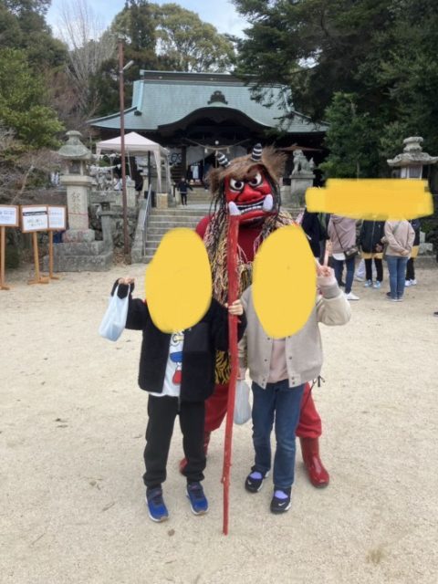 【牟礼❗️鬼マルシェ】が開催されており、名物の鬼さんと記念写真を撮ってもらいました✨