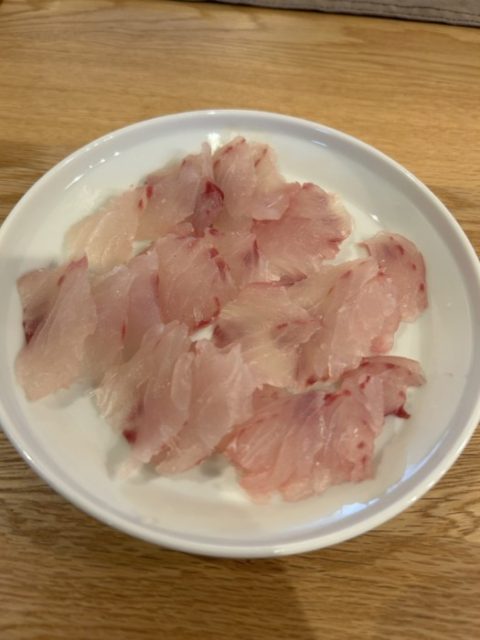 なんとか、3枚に下ろすことが出来たので【身が少しボロボロになってしまいました(*_*)】我が子のリクエストであるお刺身にしてみました✨