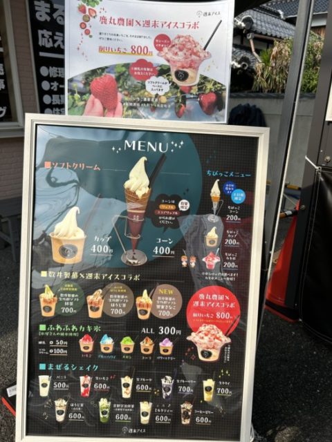 色々なメニューの中から、ノーマルのソフトクリームとまぜるシェイクの抹茶と数井製果さんとのコラボメニューの生外郎ソフトのほうじ茶を注文❗️