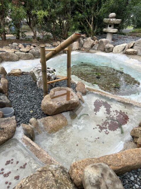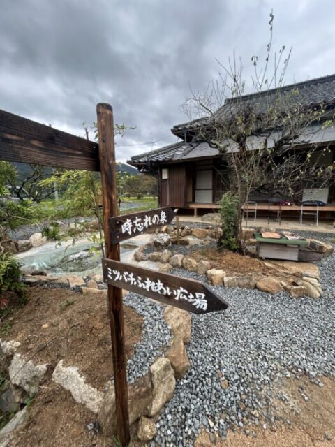 古民家を再生されて縁側に座ってゆったり過ごせる空間があり、目の前には手作りの池【時忘れの泉】があったり、