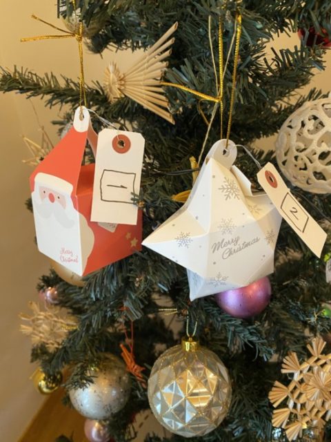 ↑こんな感じで数字の書いてあるオーナメントの中には1つ1つに色々なお菓子が入っており、その日の日付の数字が書いてあるオーナメントの中を開けて行きます(^ ^)