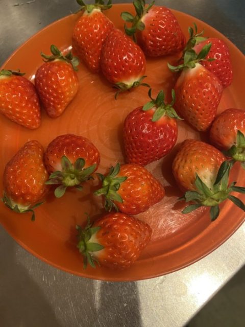 ①まずはイチゴ&ブドウを洗い、丁寧に水気をとる。