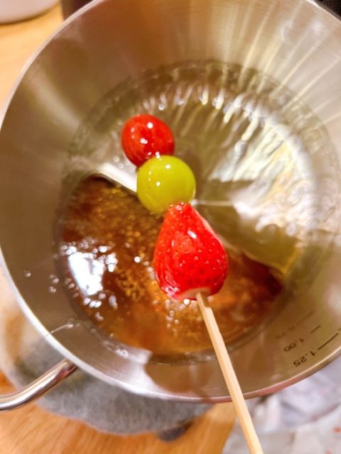 と、レシピを調べてイチゴ飴&ブドウ飴作りにチャレンジしてみました❗️