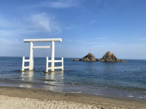 海の中に二つ並ぶ岩が夫婦のように見え、縁結びや夫婦円満のご利益があるそうです✨