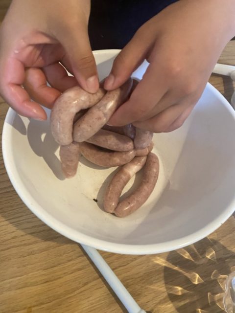 簡単にソーセージを手作り出来るのー?って思ってましたが皆んなで力を合わせて、いくつもの工程をこなしていき、↓この腸詰めの工程はとっても楽しくて✨でも、とっても難しい〜❗️❗️